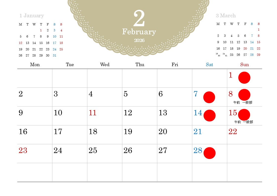 〇1月は創玄展(全国学生書道展)や書き初め展の審査日程の関係で、1月は十分な稽古日が確保できませんでした。各曜日2回のお稽古とし、月謝は【幼年部2,000円】・【学生部3,000円】とさせて頂きます。一般部は月謝金額に変更はございません。